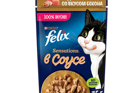 Влажный корм Felix Sensations для взрослых кошек, с индейкой в соусе со вкусом бекона 75 г доставка