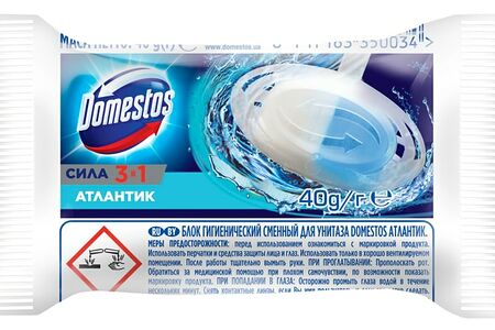 Блок туалетный Domestos Атлантик 3в1 гигиенический против запахов и грязи 40г доставка