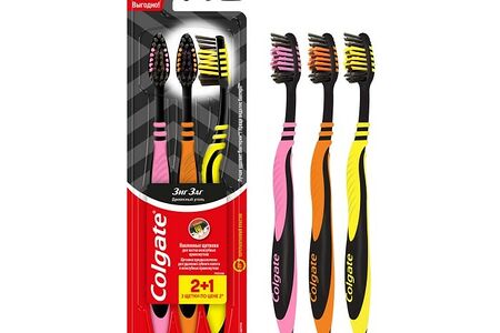 Зубная щетка Colgate Зиг заг 2 + 1 Древесный уголь средней жесткости доставка