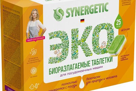 Таблетки для посудомоечных машин Synergetic Биоразлагаемые, 25 шт доставка