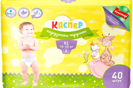 Подгузники-трусики Каспер для детей 6 15-30 кг, 40 шт. доставка