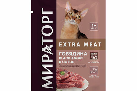 Влажный корм для кошек Мираторг Winner Extra Meat Говядина Black Angus в соусе доставка