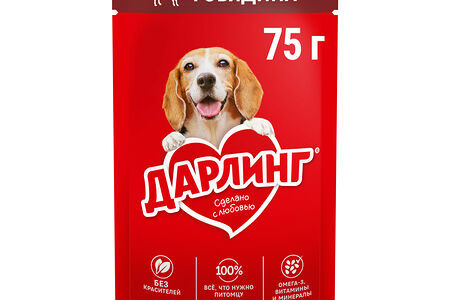Влажный корм ДАРЛИНГ для взрослых собак, кусочки с говядиной в подливе доставка