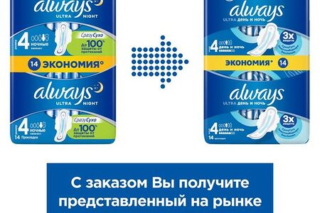 Прокладки Always Ultra День и ночь 14 шт доставка