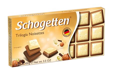 Шоколад Trilogia Schogetten молочный, белый с грильяжем и фундуком, с джандуей и фундуком доставка