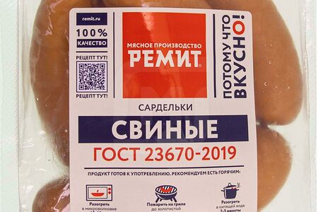 Сардельки Ремит ГОСТ свиные 1 сорт доставка