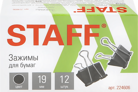 Зажимы для бумаг STAFF Everyday на 60 листов 19мм, черные Арт. 224606, 12шт доставка