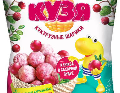 Кукурузные шарики Кузя Лакомкин со вкусом клюквы в сахарной пудре доставка