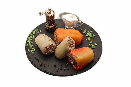 Мясо курицы, перец болгарский, рис, лук репчатый, перец чёрный молотый, соль