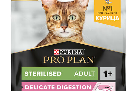Сухой корм PRO PLAN® Sterilised Adult DELICATE DIGESTION для взрослых стерилизованных кошек с чувствительным пищеварением, с высоким содержанием курицы 400 г доставка