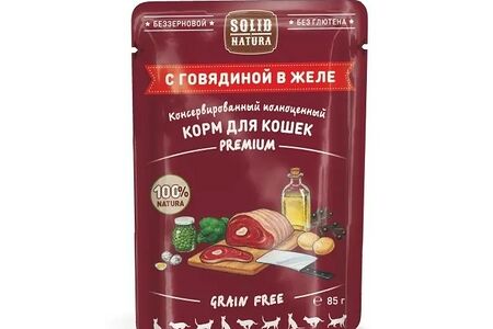 Влажный корм для кошек говядина-желе Premium, пауч 85 г доставка