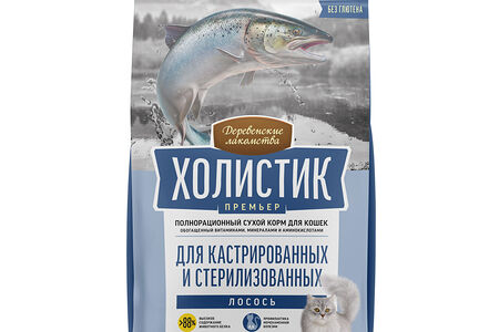 Сухой корм для стерилизованных кошек и котов Деревенские лакомства Холистик Премьер с лососем доставка