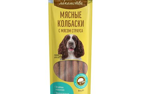 Лакомство для собак ДЕРЕВЕНСКИЕ ЛАКОМСТВА Мясные колбаски с мясом страуса 45г доставка