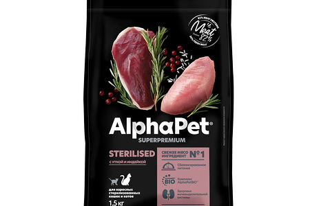 Сухой корм AlphaPet Superpremium для для взрослых стерилизованных кошек и котов Утка и индейка доставка