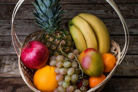 Сведения о составе: яблоки, груши, ананас, мандарины, апельсины, гранат, виноград, корзинаСтрана изготовления: РоссияСведения об упаковке: Пакет