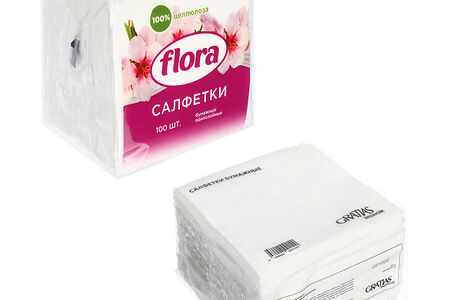 Салфетки бумажные однослойные 100 шт, п/у, 2 вида доставка