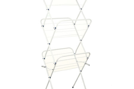 Напольная сушилка для белья раскладывается в высоту, а не в ширину, поэтому это прекрасное решение для тех, у кого нет места для горизонтальной напольной сушилки. Она настолько компакта, что легко размещается в ванной комнате, на узком балконе и даже в душевой кабине! Быстро складывается и раскладывается и безопасно фиксируется в разложенном виде. На верхних углах сушилки расположены пластиковые держатели для вешалок, что не только увеличивает вместимость сушилки, но и позволяет правильно сушить рубашки. Максимальная загрузка – до двух полных загрузок стиральной машины, т.е. 12 кг. Размер в сложенном виде: 70х50х6см.