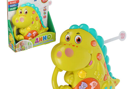 Обучающий бизиборд ИГРОЛЕНД «Дино» со световыми эффектами – это интерактивная игрушка, которая подойдет как для мальчиков, так и для девочек. Забавный динозаврик споёт веселые песни и расскажет стихи, а также поможет ребёнку запомнить названия животных в сопровождении реалистичных звуков. Громкость можно регулировать. Для работы требуются 2 батарейки AA.
