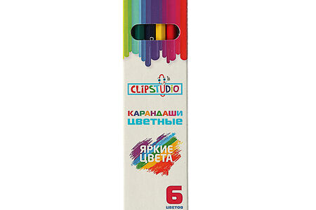 Clipstudio карандаши 6 цветов шестигранные заточ., пластик, в карт.кор. с подвесом доставка