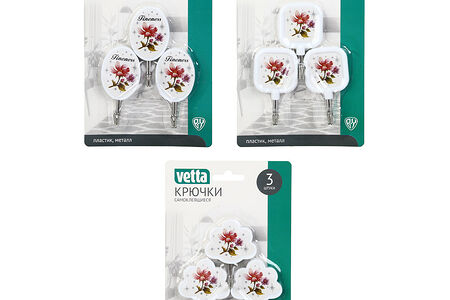 Vetta крючки самоклеящиеся на блистере, 3шт, пластик, металл, 3 дизайна, wf-217 доставка