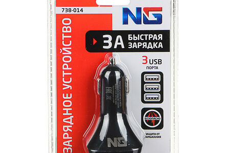 Ng устройство зарядное автомобильное, 3xusb, 3a, 12/24в, пластик доставка