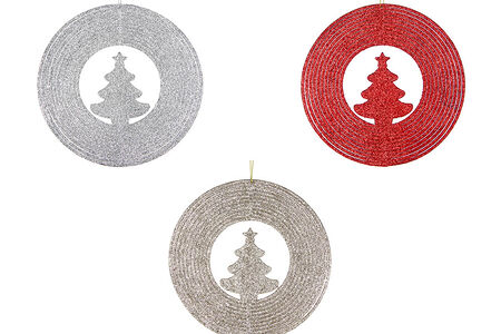 Сноу бум подвеска в виде круга с елкой, глиттер, пластик, 5 цветов, 15см доставка