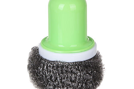 Металлическая губка для посуды от бренда Vetta. Очищает от въевшихся загрязнений. Губкой удобно пользоваться: у нее съемная пластиковая ручка. Благодаря этому губка не повреждает руки, даже если вы трете посуду с сильным нажимом.