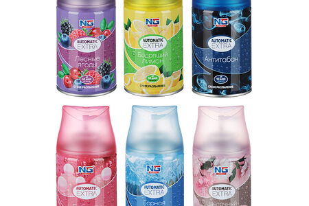 В ассортименте представлены шесть ароматов: лесные ягоды , бодрящий лимон , антитабак , бабл-гам , горная свежесть , цветочный сад . Каждый аромат имеет свои уникальные ноты, что позволяет выбрать наиболее подходящий вариант для вашего помещения. Баллон-аэрозоль выполняет сразу 2 функции: нейтрализует запах и затем наполняет воздух превосходной ароматной композицией. В среднем баллон освежителя рассчитан на 2500 впрыскиваний.