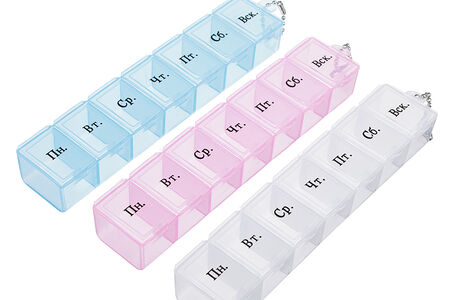 Пластиковый бокс для хранения таблеток VETTA – это компактный и удобный органайзер для таблеток, БАДов и витаминов. Имеет 7 блоков с маркировкой по дням недели.