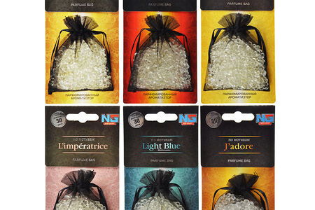 Аромат брендовой парфюмерии в автомобиле – это часть вашего индивидуального стиля! Ароматизатор Perfume Bag от NEW GALAXY в виде мешочка с гелевыми гранулами имеет узнаваемый аромат известного мужского и женского парфюма: Fahrenheit, J’adore, L’imeratrice, Light blue, Million, Shaik и подчеркнет ваш имидж. Варианты крепления: на зеркало заднего вида к вентиляционной решетке. Работает до 30 дней.