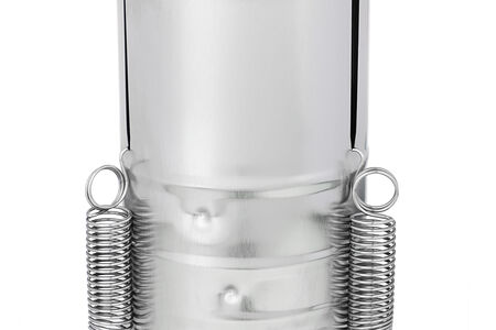 Закрепляем нижнюю крышку и пружины. Внутрь вставляем кулинарный пакет. Плотно утрамбовываем ингредиенты. Устанавливаем верхнюю крышку и фиксируем на ней пружины. Упакованную ветчинницу кладем в кастрюлю с горячей водой, аэрогриль, мультиварку или на противень в духовке. Мясо равномерно варится и одновременно прессуется, поэтому рулеты хорошо держат форму и легко режутся. Готовка в мультиварке занимает около 50 минут. Затем изделие нужно остудить до комнатной температуры и убрать в холодильник.