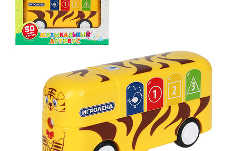 Музыкальный инерционный автобус Игроленд с сенсорными кнопками и проектором – современная игрушка, которой обрадуется каждый ребенок! Веселый автобус споет забавные песенки про зверят и друзей, про машинки и хорошие манеры, научит алфавиту, а также расскажет стишки про формы, цвета и цифры. Развивающая игрушка будет полезной для детей от 1 года и подарит ребенку много улыбок. Автобус работает от батареек 3хAG13.