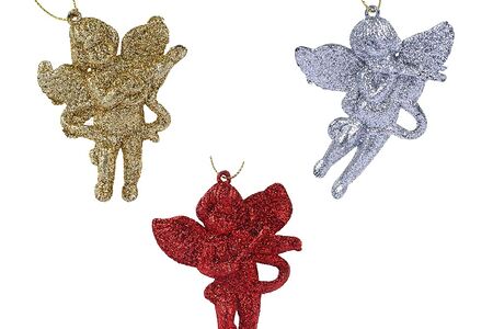 Набор подвесок СНОУ БУМ в виде ангелов с покрытием цветным глиттером 8х6 см используется для украшения елки, интерьерного тематического декора, а также для создания оригинальных декоративных композиций. Милые блестящие ангелочки будут напоминать о приближающихся праздниках, создавая атмосферу уюта, тепла и умиротворения. Фигурки из пластика не сломаются и не разобьются при случайном падении, поэтому они абсолютно безопасны, если в доме есть маленькие дети. 3 штуки в наборе: золотого, серебряного и красного цветов.