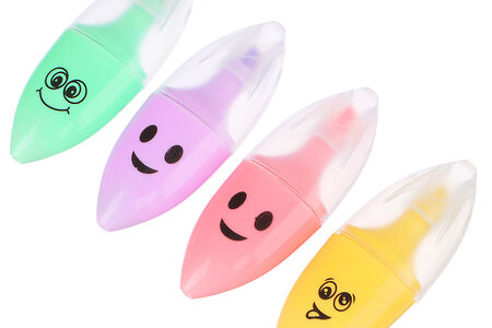 Маркер-выделитель мини, с принтом в форме смайлика, овальный корпус, линия 4мм, 4 цвета доставка
