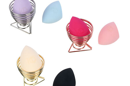 Размер: спонжи для макияжа 6х4 см и подставка 5х5,5 см. Материал спонжей - полиуретан. Подставка изготовлена из металла, что обеспечивает ее прочность, долговечность и удобство мытья.