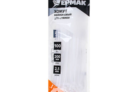Ермак хомут нейлоновый для стяжки 2,5х200мм, белый 100шт/уп доставка
