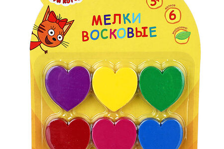 Мелки восковые Хоббихит «Три кота» имеют необычную форму и непременно понравятся ребенку. Экологичные мелки из парафина рисуют ярко и используются целиком без остатка. Не пачкают руки, а необычное исполнение вызовет у ребенка интерес к рисованию. 6 разноцветных мелков в упаковке. 3 дизайна на выбор: сердечки, динозаврики и пирожные. Для детей от трех лет.