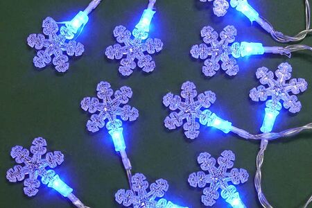 Гирлянда с насадками "снежинка" 2 м сноу бум, 10 led ламп, постоянное голубое свечение, пвх прозрачный, 2хаа доставка