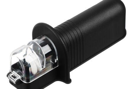 Ножеточка для стальных ножей с контейнером BY «Промо» поможет затачивать ножи правильно и быстро. Для использования точилки нужно заполнить контейнер водой и затем приступать к заточке на ролике. Точильные ролики выполнены из высокопрочной керамики и установлены под оптимальным углом. Эффективно затачивают лезвия из стали, формируя равномерный угол заточки и высокую степень остроты. Ножеточка компактная, имеет стильный дизайн. Идеальное решение для современной кухни.