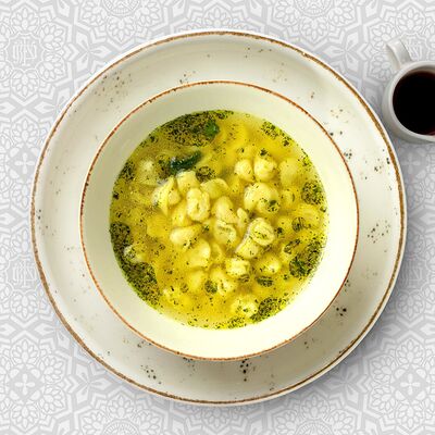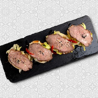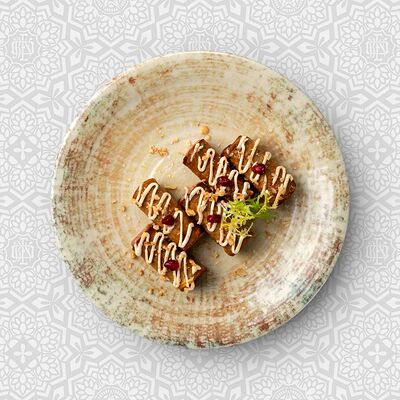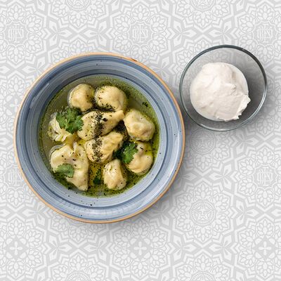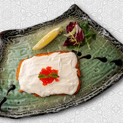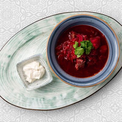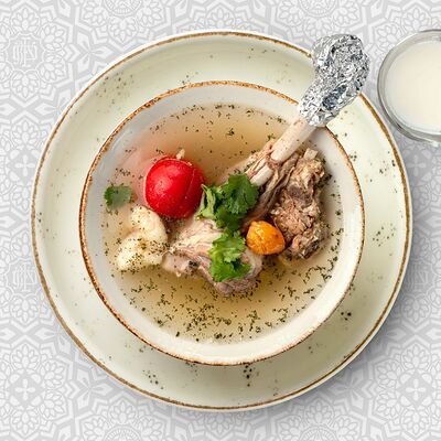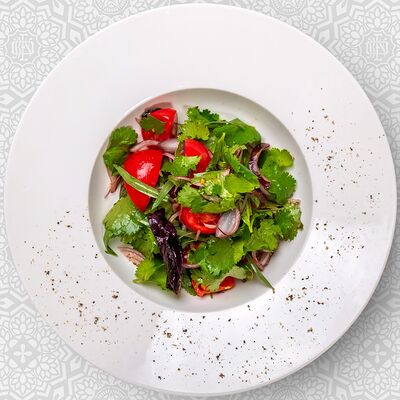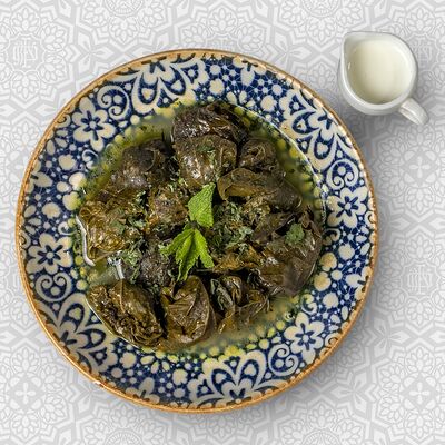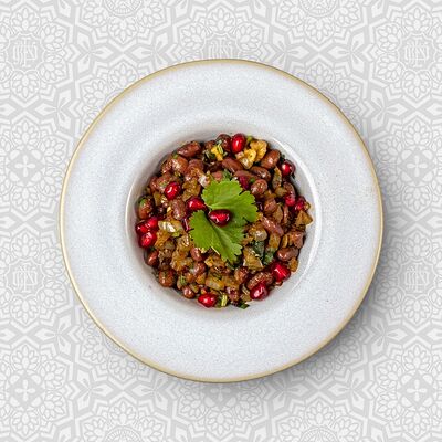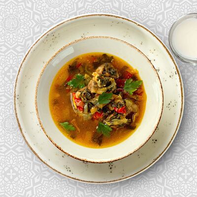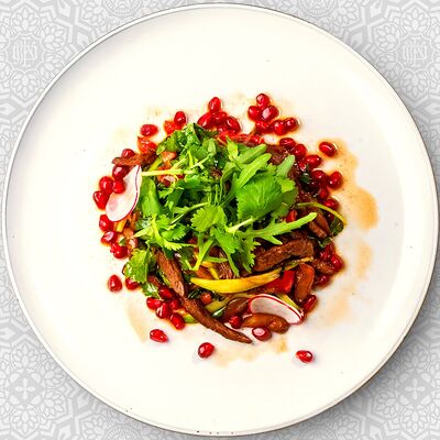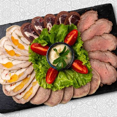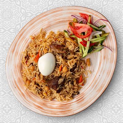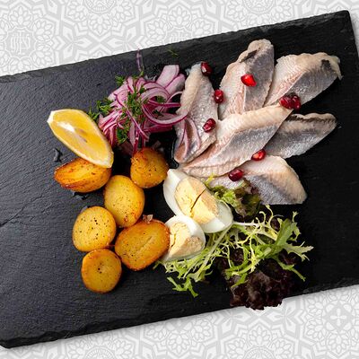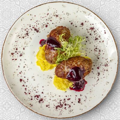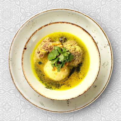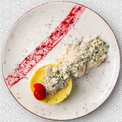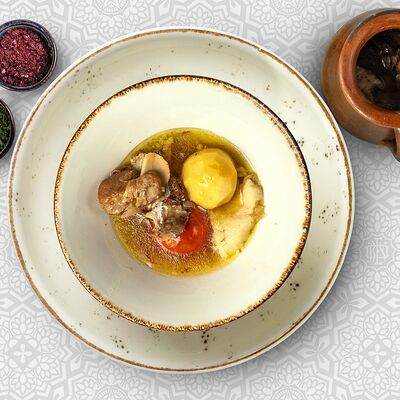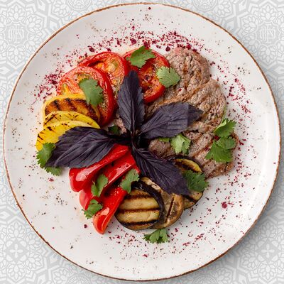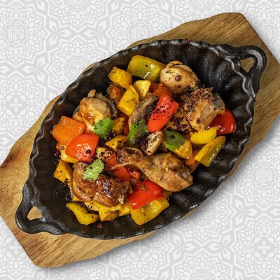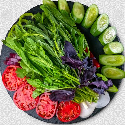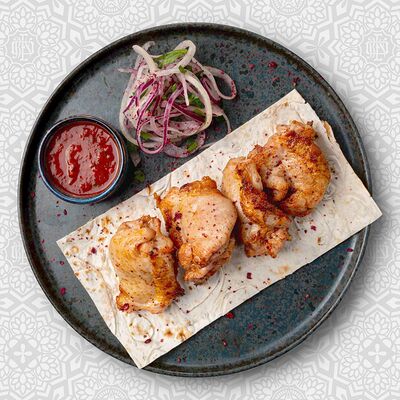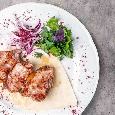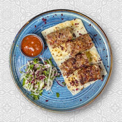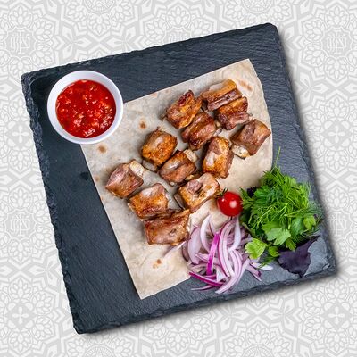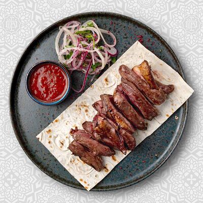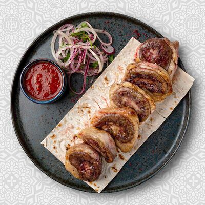 Традиционное кавказское блюдо из зажаренного на углях бараньего сердца в аппетитном сочетании с ароматными овощами и зеленью. Подаётся на тонком лаваше, с нарезанным красным луком, ароматной бакинской зеленью и домашней аджикой