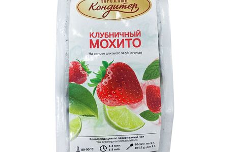 Зеленый китайский чай, мята марокканская, клубника сублимированная, сушеный лимон, сахар молотый, карамелизованный, натуральные ароматические масла и ароматизаторы, идентичные натуральным