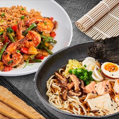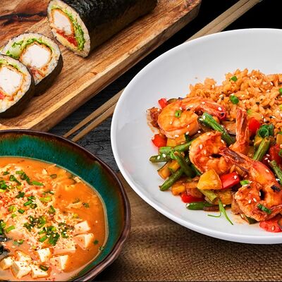 Рис, нори, начинка на выбор, соус