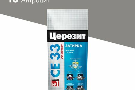 Затирка для швов цементная Церезит СЕ 33 Comfort антрацит отличается высокой степенью заполняемости, стойкостью цвета, легкостью нанесения и последующего ухода. Материал придает поверхности, облицованной керамической плиткой, эстетичный вид, подходит для наружных и внутренних работ.ПреимуществаПосле высыхания затирка образует ровный шов с гладкой текстурой.Формула MicroProtect обладает противогрибковым эффектом.Экологически чистый состав на основе цемента безопасен для жилых помещений.Смесь не вымывается из швов, но легко очищается с лицевой стороны плитки.Область примененияЗатирка Церезит СЕ 33 Comfort используется для заделки межплиточных швов шириной до шести миллиметров при облицовке стен и пола кафелем, керамогранитом или камнем, подходит для зон, постоянно контактирующих с водой.