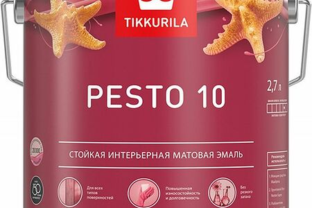 Интерьерная эмаль Pesto 10 предназначена исключительно для выполнения различных видов внутренних работ. При помощи данной эмали можно получить стойкое матовое покрытие, которое прослужит на протяжении нескольких лет и даже десятилетий.