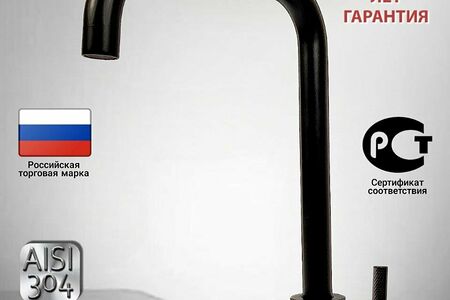Смеситель для кухонной мойки 35-08 высокий поворотный излив, черный доставка