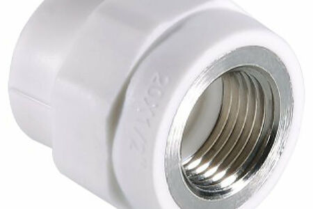 Прямой металлопластиковый фитинг для соединения полипропиленовой трубы и компонента инженерной системы с резьбовым подключением.