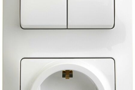 Блок от производителя Schneider Electric, включающий в себя розетку с заземлением со шторками и клавишный выключатель, предназначен для установки в различных помещениях.