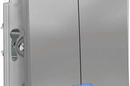 Механизм Schneider Electric AtlasDesign (цвет алюминий) выключателя 2-клавишного c подсветкой подходит для сетей 250 В, на ток 10 А. Благодаря светодиодной подсветке синего цвета изделие легко найти в темноте. Двухклавишный выключатель позволяет управлять двумя источниками света с одной точки. Лицевые детали из качественного ABS-пластика, устойчивого к царапинам и УФ-излучению. Усиленные прямые монтажные лапки для лучшей фиксации механизма в монтажной коробке.