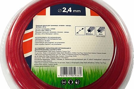 Высококачественная нейлоновая леска для тримеров и кос подходит для различных типов триммерных катушек. Просто отрежьте необходимую длину и намотайте на катушку. Форма лески Звезда обеспечивает максимальную эффективностью и скорость кошения. Леска имеет диаметр 2.4 мм и длину 50 м.