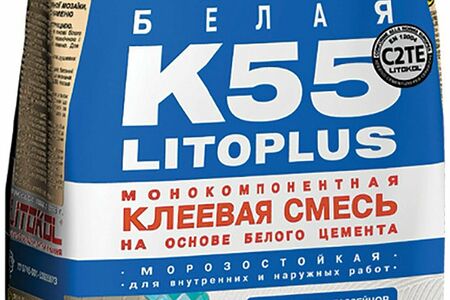 LITOPLUS K55 предназначен для наружной и внутренней облицовки керамической плиткой, плиткой из натурального камня, стеклянной, керамической и каменной мозаикой. Так как клей белого цвета, он особенно рекомендуется при укладке цветной и прозрачной стеклянной мозаики в бассейнах, полов и стен в ванных комнатах, душевых кабинах, кухнях, а также плитки из натурального белого камня, поскольку не меняет исходный цвет материала. Технические характеристики: высокая адгезия (> 1 Н/кв.мм ).